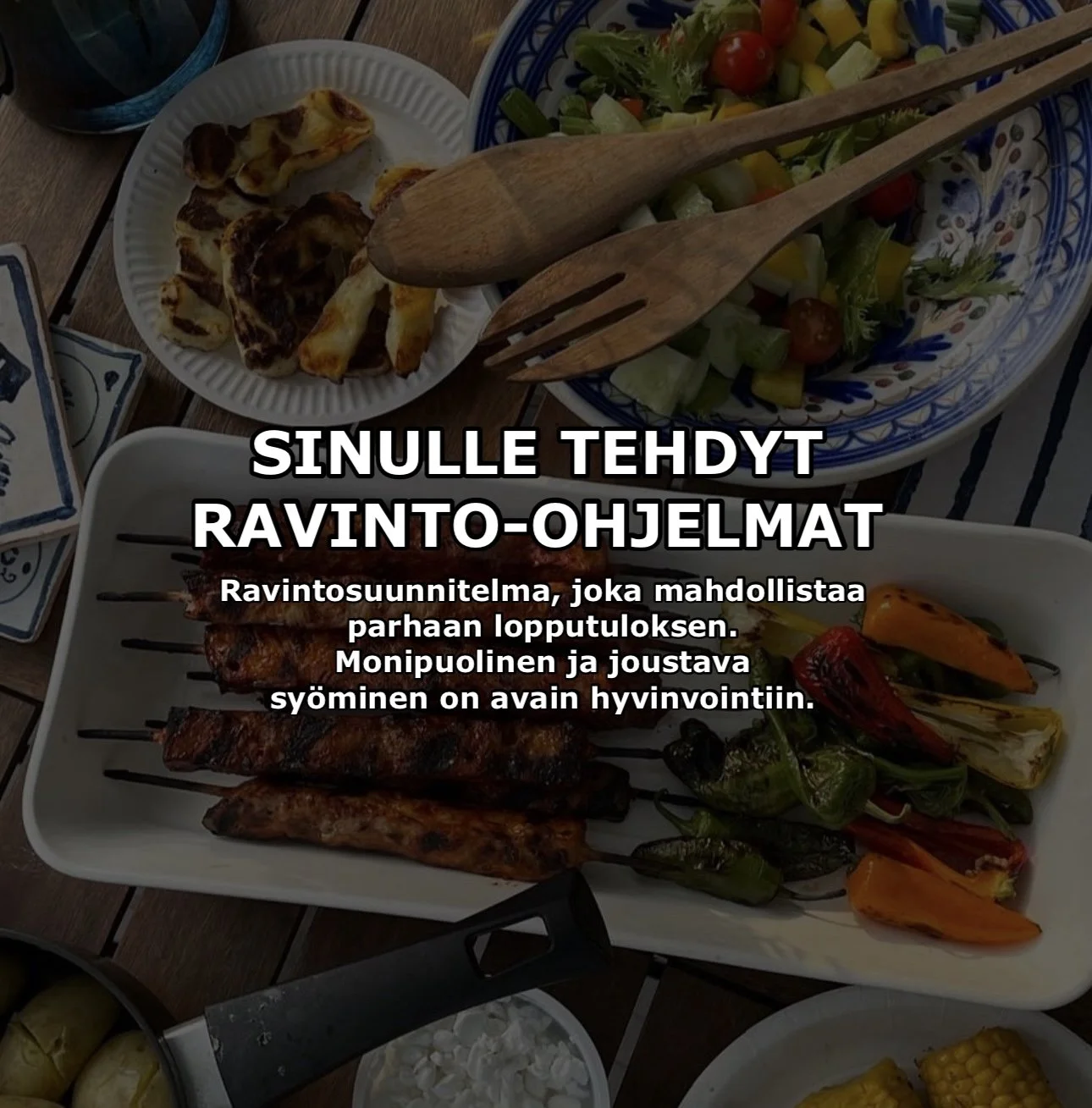 SINULE TEHDYT RAVINTO-OHJEMAT- Ravinstosuunnitelma ja ravintoneuvontaa, joka mahdolistaa parhaan lopputuloksen. Monipuoinen ja joustava syöminen on avain hyvinvointiin ja pysyviin tuloksiin.